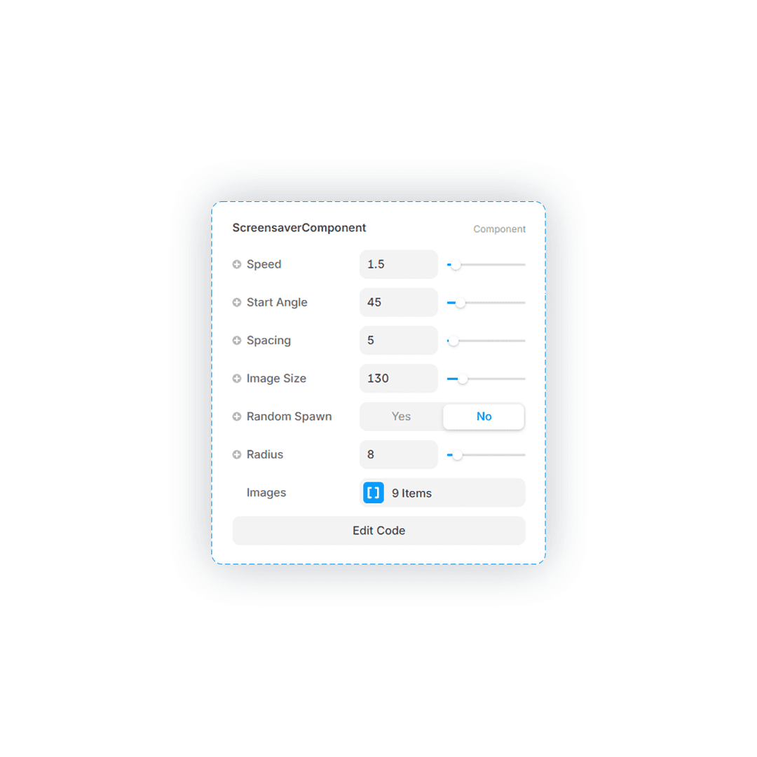Screensaver is an interactive Framer component that animates images in a dynamic, bouncing screensaver effect. Images move within a container and reflect off its edges, creating a playful, continuously evolving display. The component uses collision detection and adapts its animation to the container size.